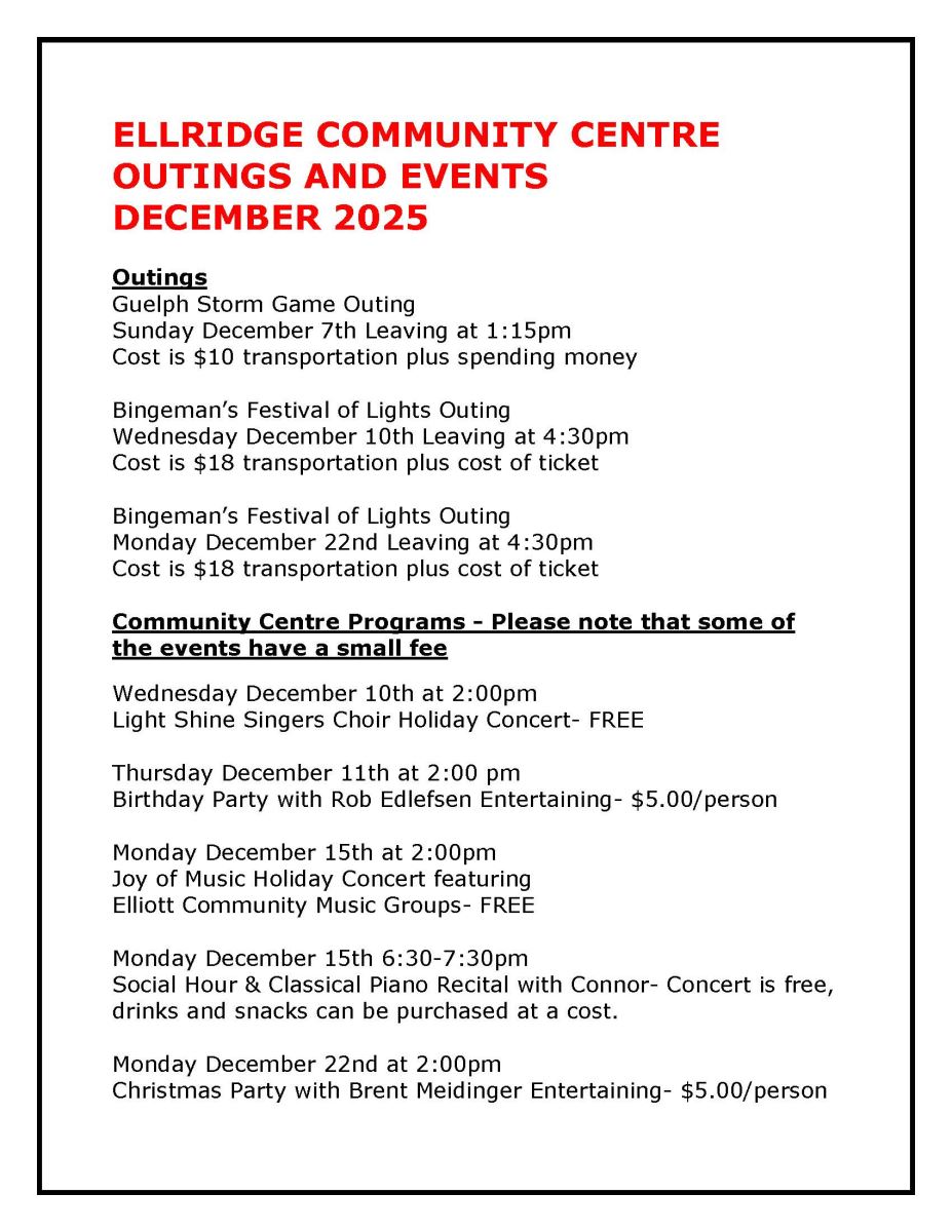 ELLRIDGE CALENDAR NOVEMBER 2025